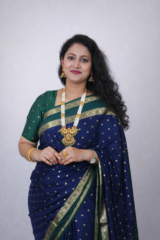 Semi Mysore Silk Saree with Buttas Small Border Experience timeless elegance with our Premium Semi Mysore Silk Saree, crafted to offer a rich traditional look at a budget-friendly...