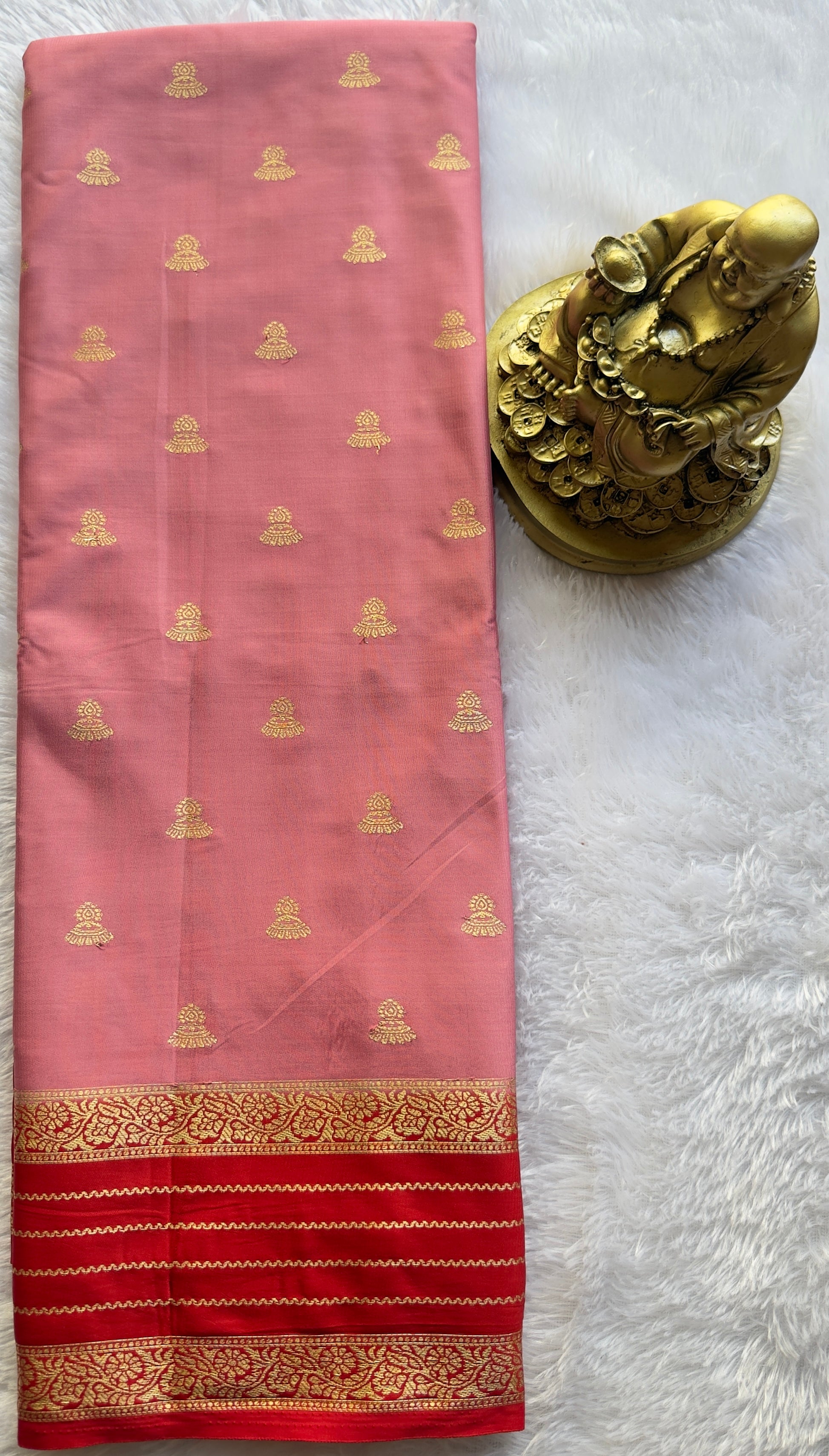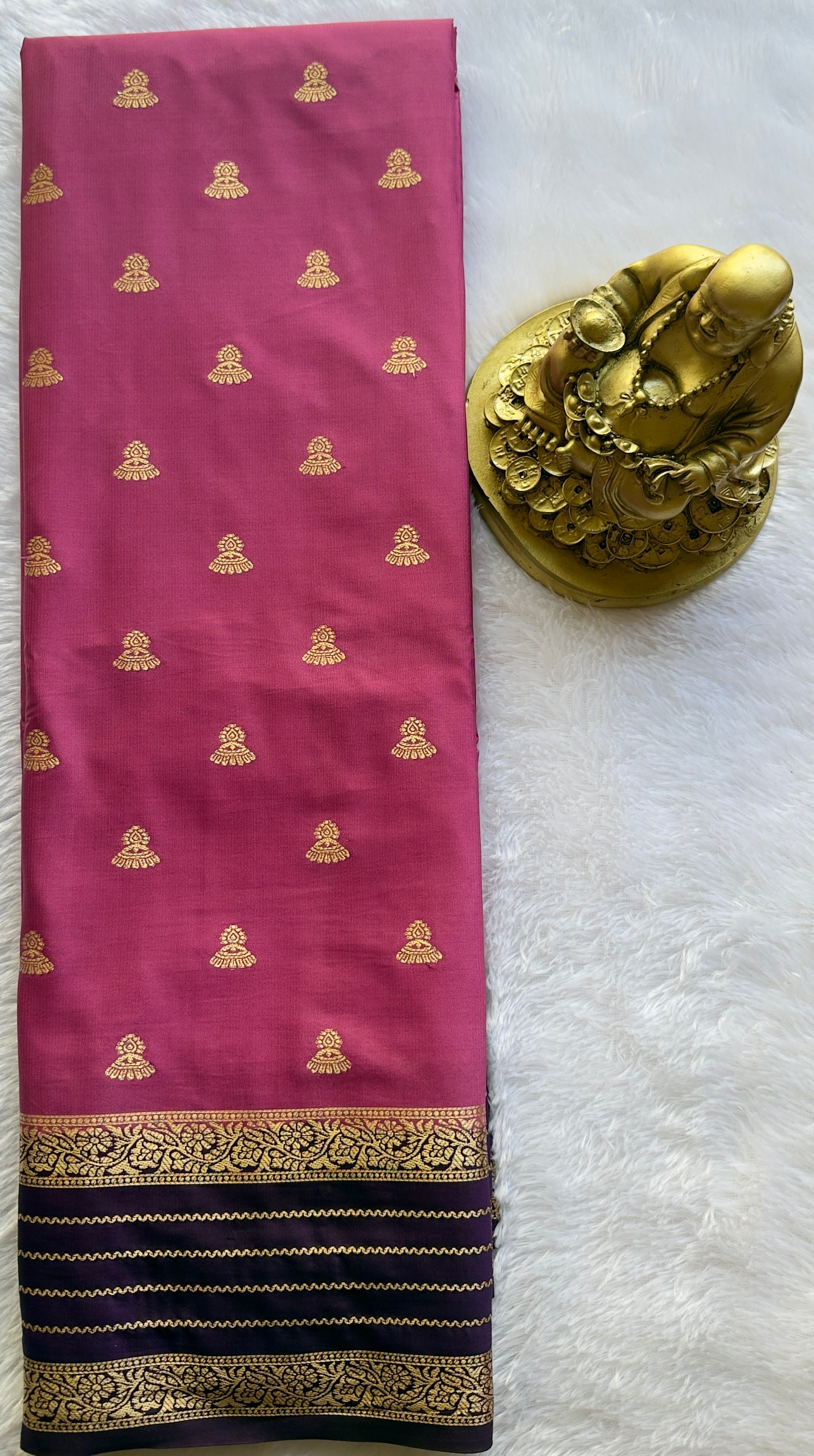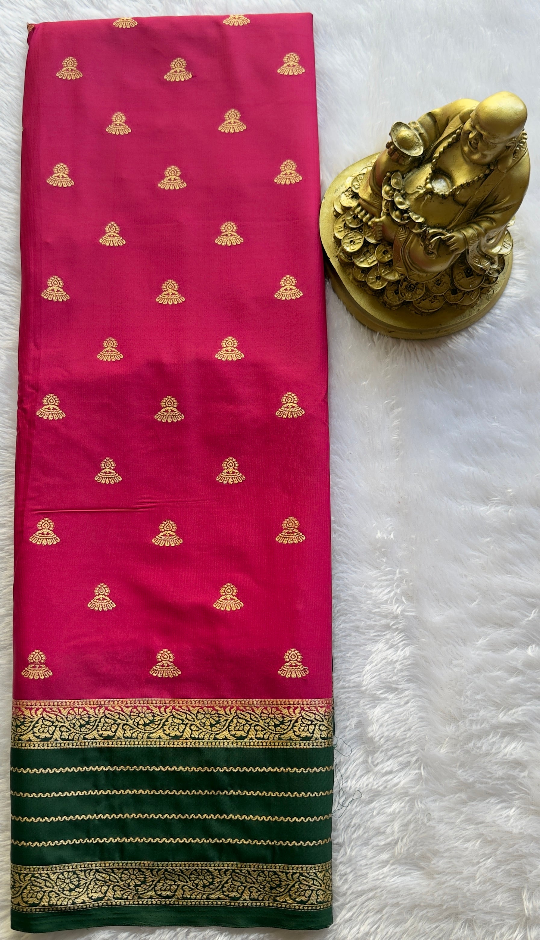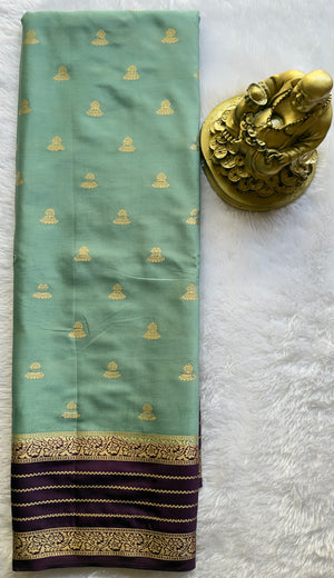 Semi Mysore Silk Jumki Butta Line Border Contrast