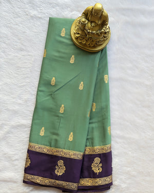 Semi Mysore Silk Mango Butta with Floral Motif Border